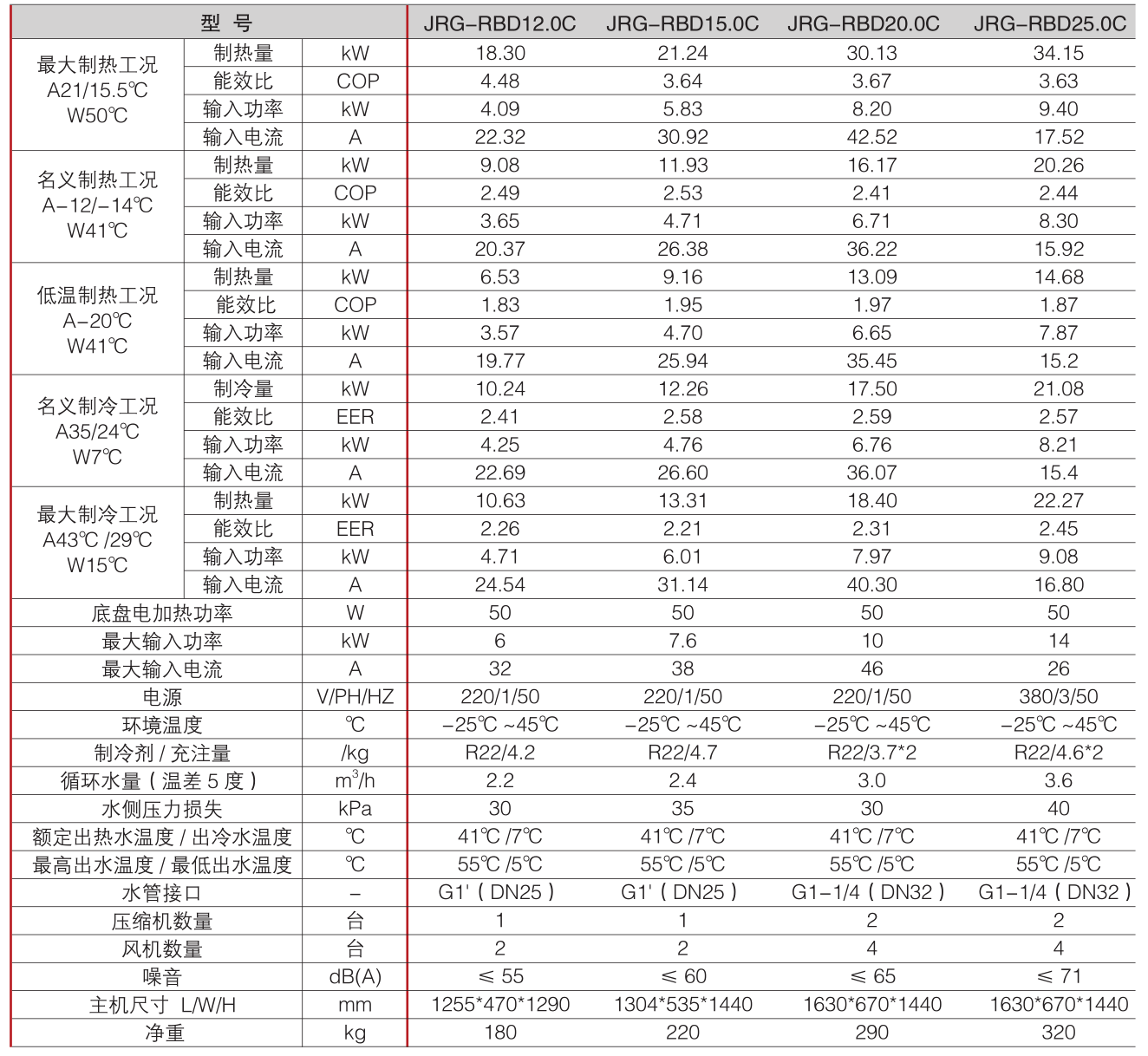 注:1.本產品適用于-25℃-45℃的環境溫度下使用。